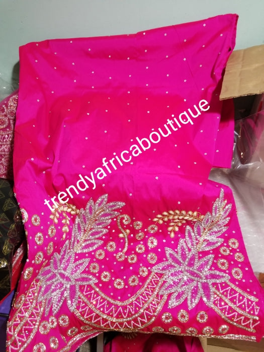 • Back in stock & Ready to ship: luxurious Quality taffeta Silk George wrapper. Fuschia pink Nigerian Bridal beaded and crystal stoned George wrapper. Sold as  2 wrapper + 1.8yds Net for blouse. Niger/delta/Igbo traditional bridal outfit