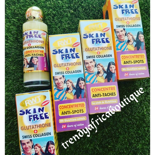 • Original RWT Skin free Concentre serum with glutathione + swiss collagen, vit. E glycol extracts 70ml x 1. Mix into body lotion or cream.