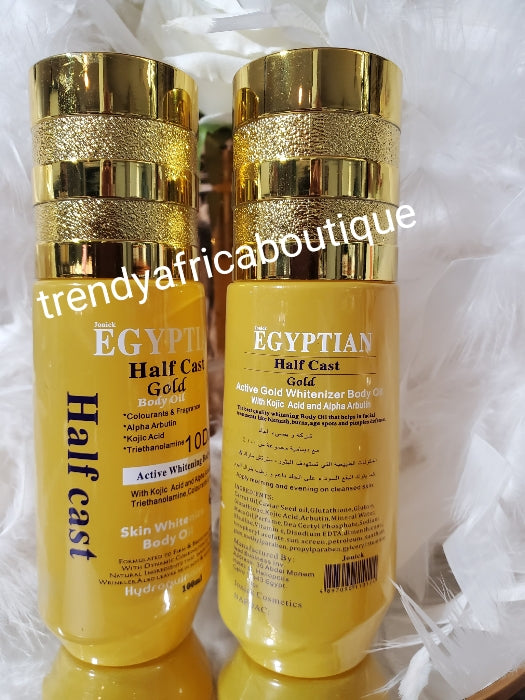 • Egyptian Half cast Gold active whitening face and body oil/serum. 10 days . Spf 30. 100ml x 1. Active whitenizer oil with kojic acid & alpha arbutin