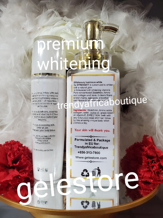 • FAST ACTION BANGA: Glitzluxury LUMINOUS WHITE 3X STRENGHT CUSTOMIZED BODY MILK👌 with premium whitening, skin repair, softe & GLOWING formula; 💯 Pure Glutathion, AMINO ACID & COLLAGEN 500ML PLUS glitzluxury Glutathion & kojic serum 100mlx 1