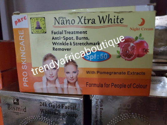 • Nano xtra whitening night facial treatment cream with Pomegranate extract with SPF 50. 15g. Clears scars, marks,  sun burn on the face