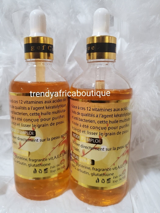 Multi vitamin oil. Clarifying and unifying with vitamins A, C, E, Albutin and glutathion 100mlx1 for face and body. Use directly or add to body lotion