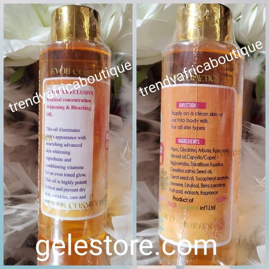 New products alert!! Evob XX EXCLUSIVE maximum concentration whitening & Bleaching oil. Triple action vitamin C, collagen, plants extracts & beta carotene oil👌 350ml x 1