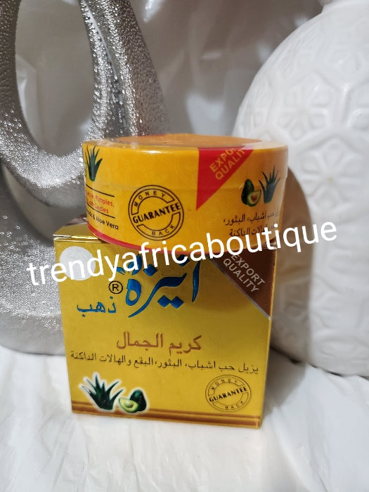 • Original Aneeza Gold beauty face shirley with Aloe vera. Fades acne, pimples,  dark under eye circle dark spot from the face. Brightens and glow your face. For all skin type. Contains Alpha arbutin!