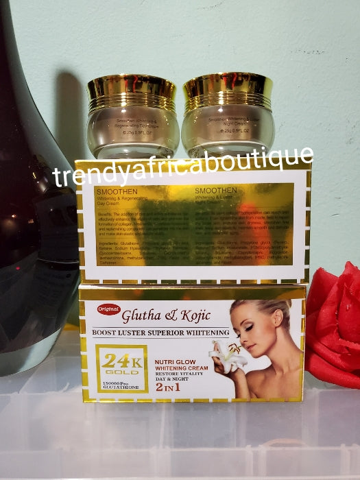 Original gluta & kojic 24k gold whitening face cream with 150000 pro glutathion 2 in 1 for day & night