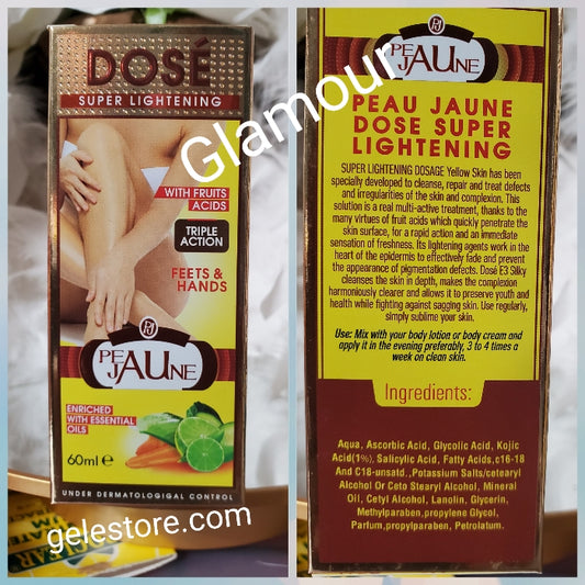 • ORIGINAL Peau Jaune DOSE super lightening triple action feet and hands serum 60mlx1. Triple action with fruit acids & essential oil. Mix into body lotion