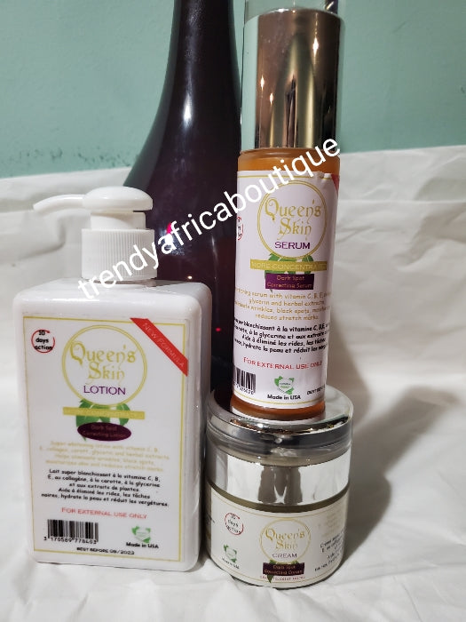 • Queens skin concentrated whitening repair body lotion, serum,& face cream. Repair stretch marks, and other skin blemises, whiten flawlessly without any side effects