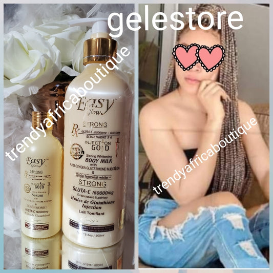 3pcs. Easy Glow Gold (easy to glow body milk) strong whitening body lotion 538ml, Gluta-C organic whitening serum & face cream