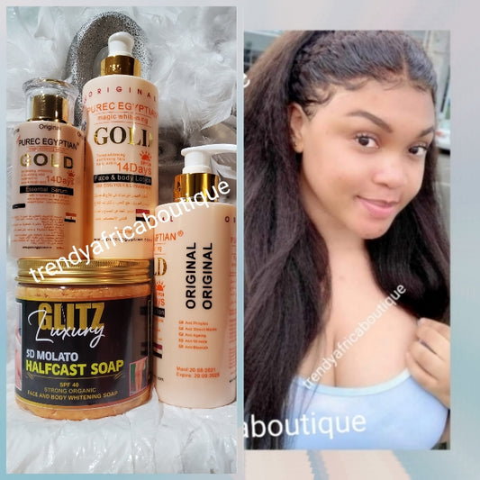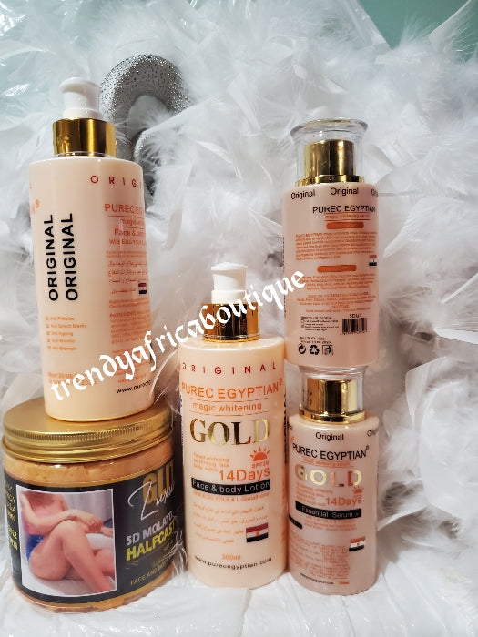 • Perfect combo: 3in1 Purec Egyptian Whitening body Lotion 1 bottles, Purec ORGANIC FORMULAR serum. 5D Molato halfcast organic soap combo
