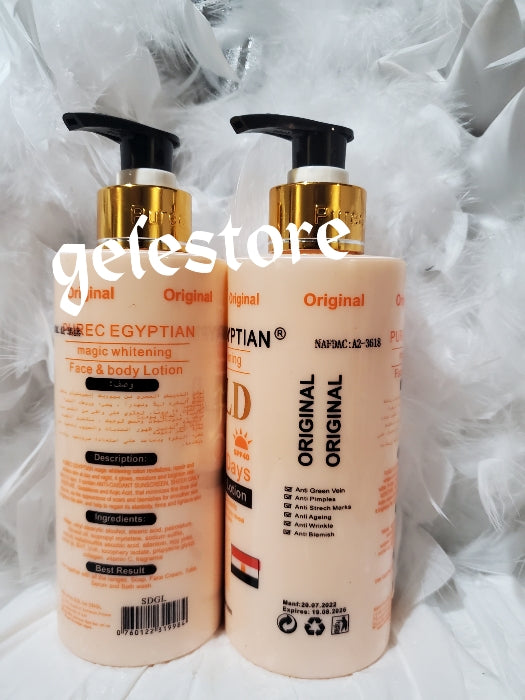 2pc NEW ORIGINAL Purec Egyptian magic Whitening Lotion Plus Purec Egyptian gold soap.