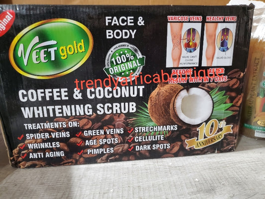 2pcs. Set; Veetgold coffee & coconut body corrector shower gel PLUS scrub: for all skin type. Organic scrub activity work skin blemishes such as pimples, stretch marks etc.👌