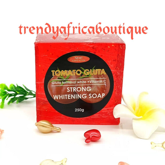 • Tomato Gluta (Glutathion) Terminal white face and body soap made with vitamin C & Collagen 250g Strong whitening 5 days action.