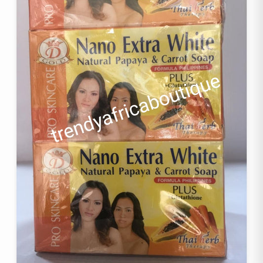 X 3 soap ORIGINAL Nano Extra white Natural papaya & Carrot soap plus Glutathion for face and body 160g x 3