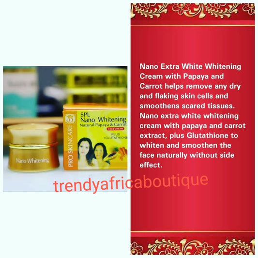 • 3 pcs set Nano magic portion whitening lotion 500ml, extra white soap and night cream with papaya and carrot 15g. Active ingredients kojic acid, beta carotene. Original Nano!!!