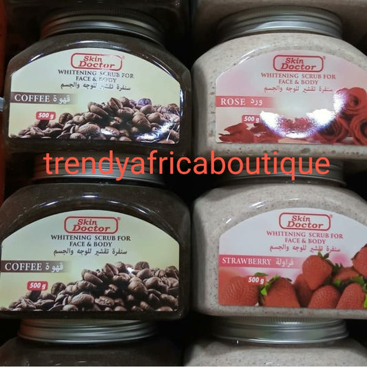 • Skin Doctor face and body whitening Coffee scrub for all skin type, gently exfoliates and remove dead skin cells. 500g jar.