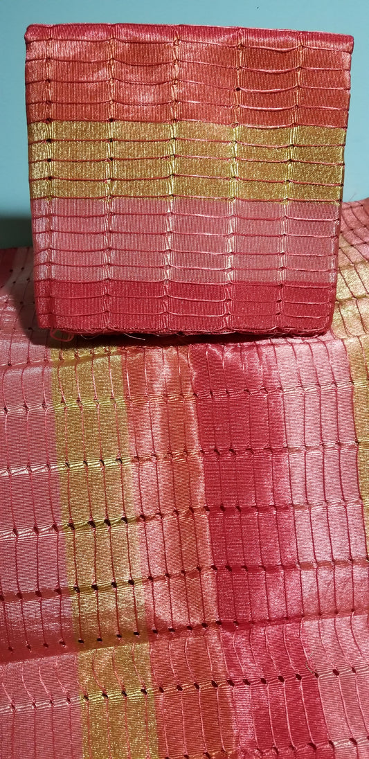 • Coral/peach/gold aso-oke gele/ipele for Nigerian party. Nigerian Gele or head tie, head wrap