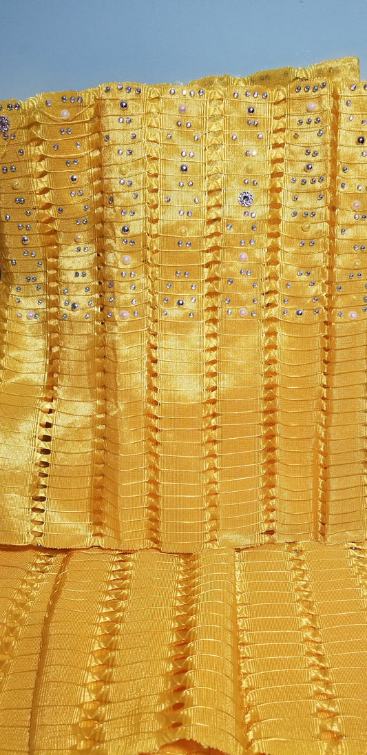 • Beaddazzled Nigerian Traditional wedding aso-oke/Head wrap in beautiful yellow color Sold as Gele only. Measure 72 inches long and 19inches wide