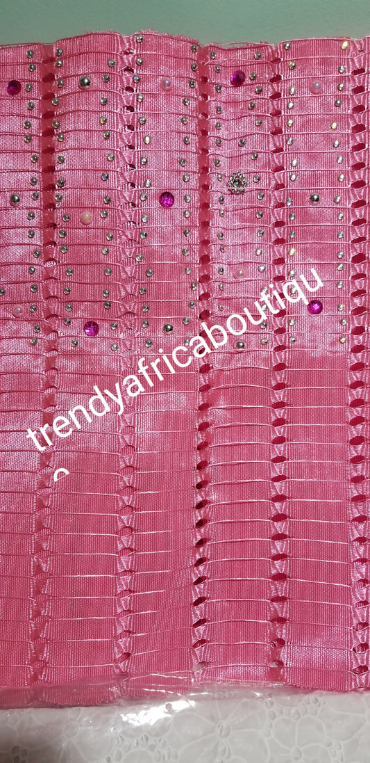 New arrival pink Beaded/stoned aso-oke gele. Nigerian Tradional head wrap called aso-oke. Super quality woven from Nigeria