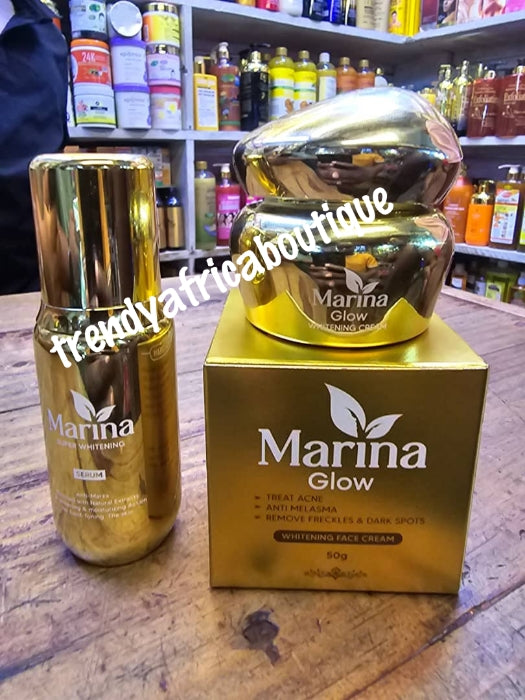 Another banga body lotion just landed with the soap, oil, serum, face.  5pcs. Marina glow super lightening beauty milk is a fast action formular that whitens and  nourishes your skin and reduce dark spots and slows down pigmentation.