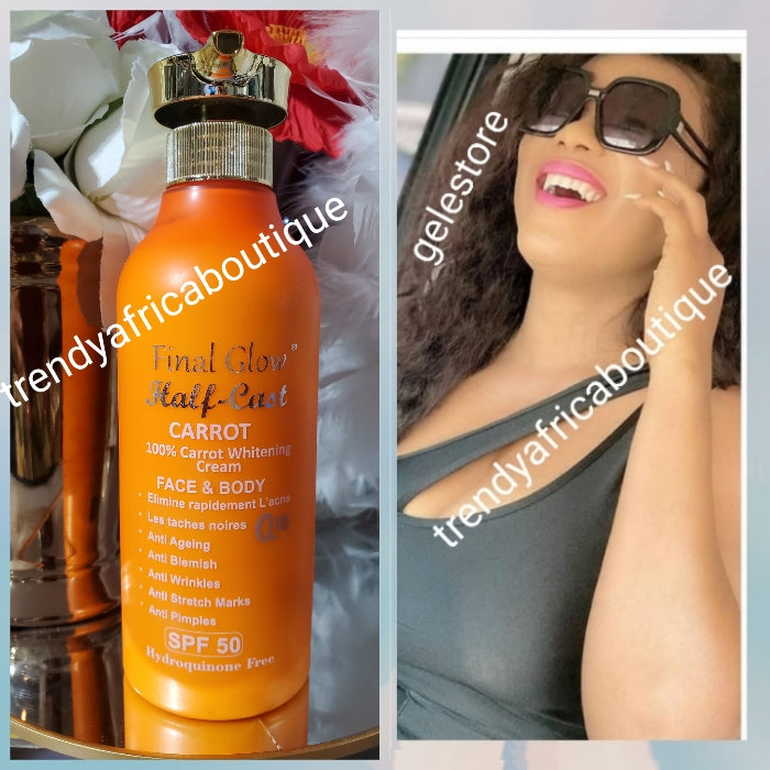 Final Glow half-cast carrot whitening body lotion with 💯 carrot for face and body. Spf 50. 500mlx 1. Super effective