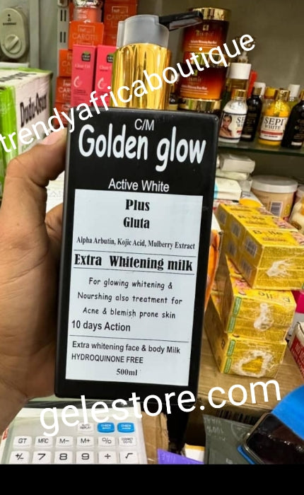• Another Banga; Golden Glow Active white plus Gluta. Xtra Whitening face & body lotion spf 20.👌 500ml x 1 bottle HYDROQUINOUN free