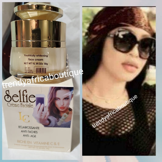 Another banga: Selfie facial cream. whitening, anti stains, anti aging face cream, anti sun burn. formulated to keep a younger looking skin. With snail slime, collagen, vitamin C, E. 50ML X 1