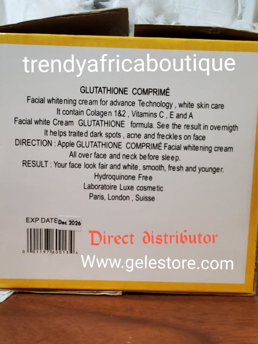 • Authentic lait teint Diamant Glutathion comprime whitening & anti stains face cream 30g  Formulated with glutathion, alpha arbutin, to give you that natural glow & flawless face!