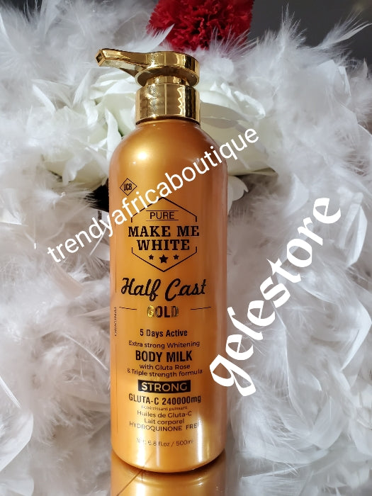 Another BANGA👌, Pure Make Me White half cast GOLD 5 DAYS ACTIVE Extra strong Whitening body milk with gluta rose. Triple strenght formula with GLUTA-C 500ml x 1 body lotion 👌 💯 satisfaction,