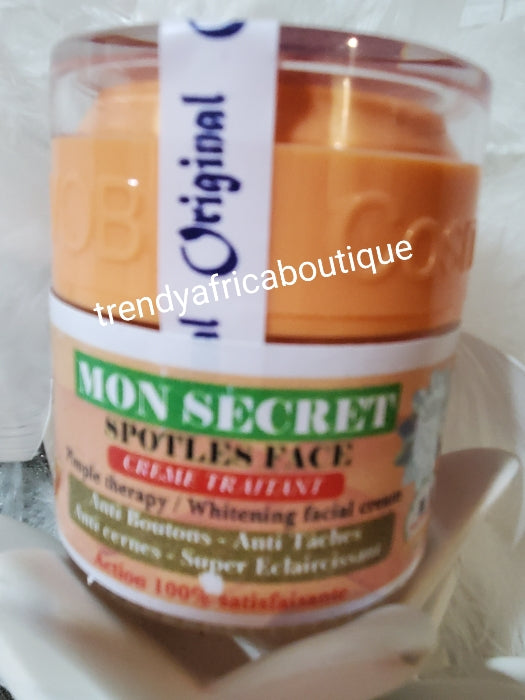 • Mon secret Spotless face cream. Clears pimples, fade away spots/ facial blemishes. Brightens dull faces 50gx1