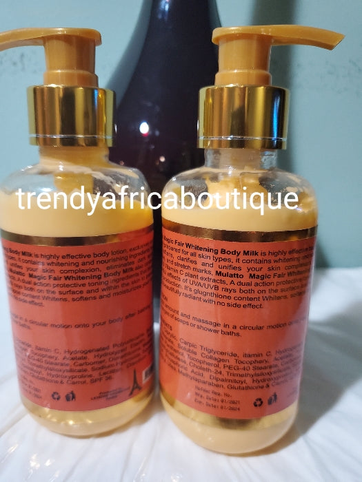 • Mulatto magic fair whitening body lotion. Glutathione injection + careot extract with spf 36. 5 days results!!! 250ml