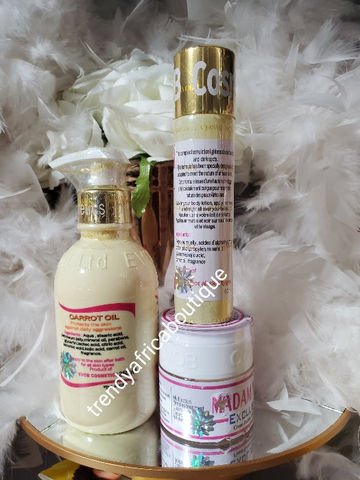 ORIGINAL 3pc. Evob skin whitening/lighening set combo of body lotion 250ml, double concrete serum 60ml and super facial treatment facecxream 50g. FAST ACTION SET!!!