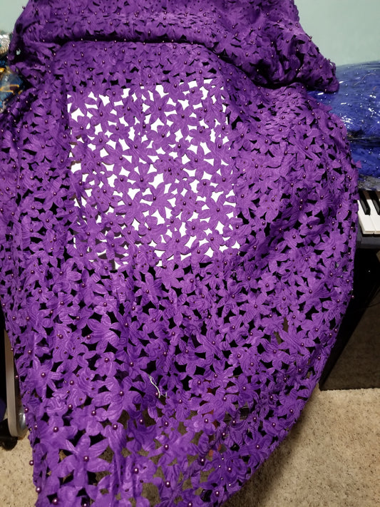New arrival top quality purple Laser cut African French Lace fabric. Beaded amd stones to perfection. Full lacer cut. Sold per 5yds. Price is for 5yds