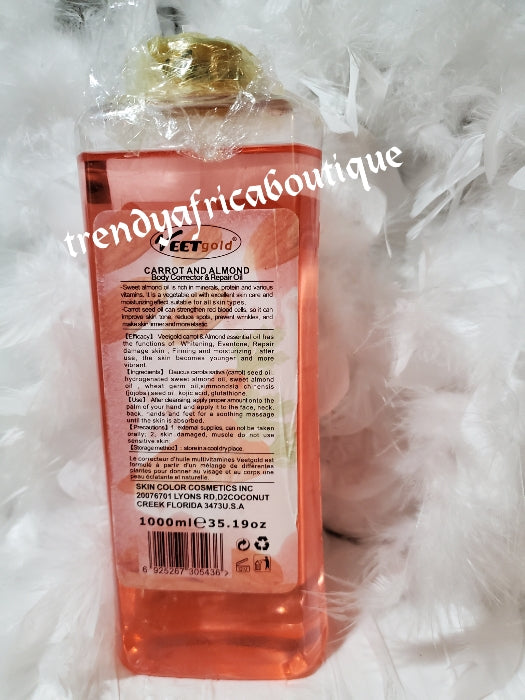 • BACK IN STOCK!!! Veetgold carrot & Almond whitening, glowing oil for face & body with Pump. Formulated with carrot & almond 1000mlx1. Mix into body lotion or use by itself. BEWARE OF FAKE!!