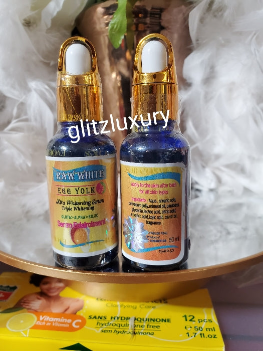2pcs. Breaking NEWS!!🔥 BANGA Glitzluxury Asian Halfcast whitening body cream 400g jar, 7X PLUS & Evob Raw white Egg yolk xtra whitening serum. FAST ACTION AGAINST Hyperpigmentation, dark knuckles, green veins, blemishes varicose veins.💯 ORGANIC