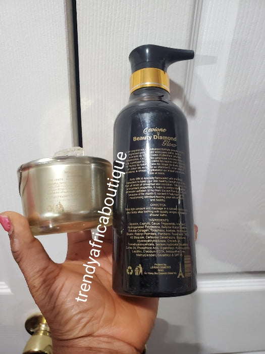 • 2pcs. BANGA: Levione Beauty diamond glow paris half cast whitening body milk with AHA & GLUTATHION. CLASSIC BLEACHER 500ML. & FACE CREAM spf45