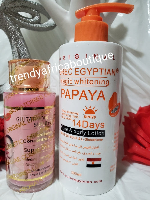 2pcs. Combo sale: Original Purec Egyptian with papaya body lotion 300ml + Glutathione comprime whitening concentre Fast action anti discoloration 100ml