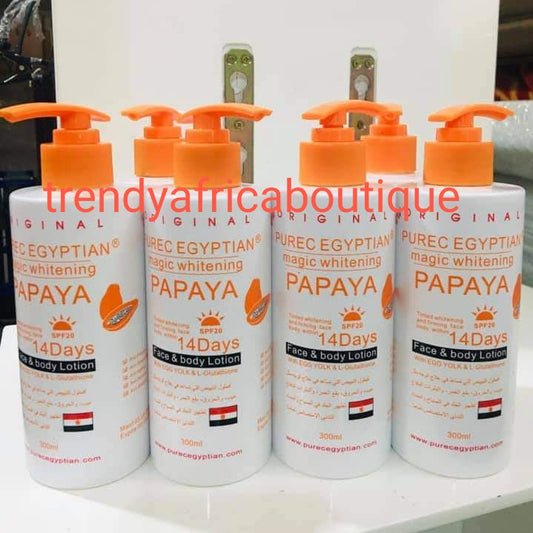 2 bottles sale: Original Purec Egyptian magic whitening & glowing papaya body lotion spf 40. Fast action lightening for face and body. Formulated with natural ingredients. Hydroquinone free!!
