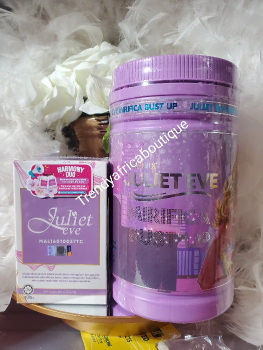 Perfect combo! 2pc duo from Satin Skinz Juliet Eve mirifica BUST UP powder supplements chocolate flavor & Juliet Eve capsules 60/bottle. Women best friend 👌👌