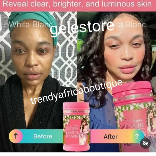 • Another banga: Radiant skin👌👌 Satin Skinz Whita Blanc 5x more effective in Treat hyperpigmentation, diminish acne & scar. 800g jar x 1. Supplements for skin brightening