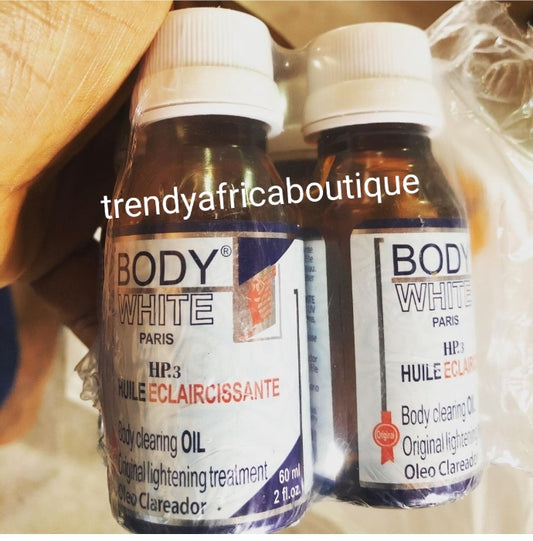 • Body white paris HP- 3 lightening treatment body clearing oil. SUPER FAST. Mix with body lotion, shower gel, cup cream etc  60ml x 1