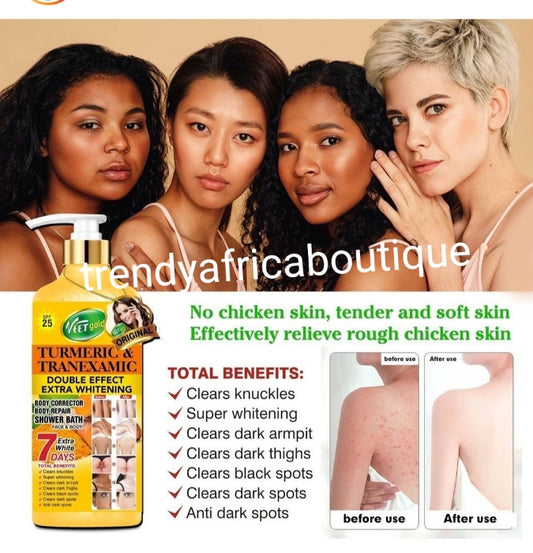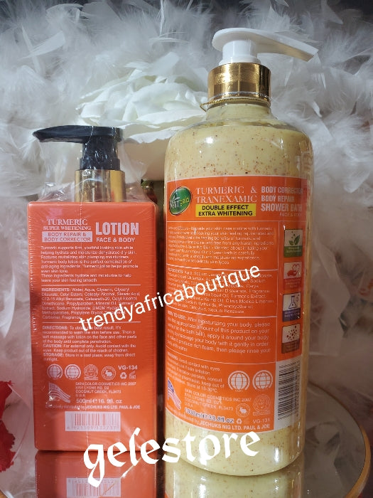 2pcs.Veetgold turmeric super whitening body lotion repair/corrector AND Veetgold turmeric & Tranexamix double effects extra whitening body corrector shower gel 1000ml
