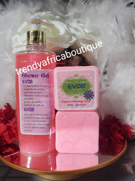 3pcs. Set: 1 EVOB Shower gel + 2 Evob moisturizing & whitening face and body soap. Anti spots. X 2 For sensitive skin
