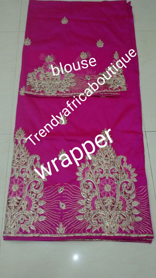 • Fuchsia pink Fancy India-George Wrapper with hand cut flower boader. Sold 5 yards lenght
