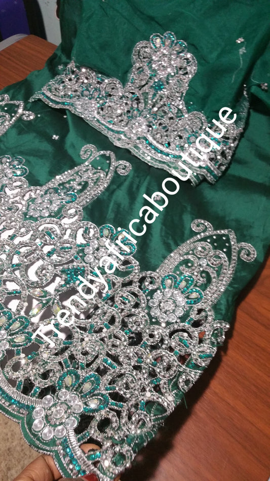 Beautiful Green George Wrapper & matching net blouse in quality Taffeta silk. Hand Stoned quality Nigerian/Igbo George wrapper