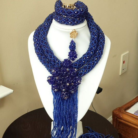 • SALE: Nigerian wedding beaded-Necklace set. 2 row necklace and bracelet with drop earrings. Nigerian/African weddings. Sold as a set