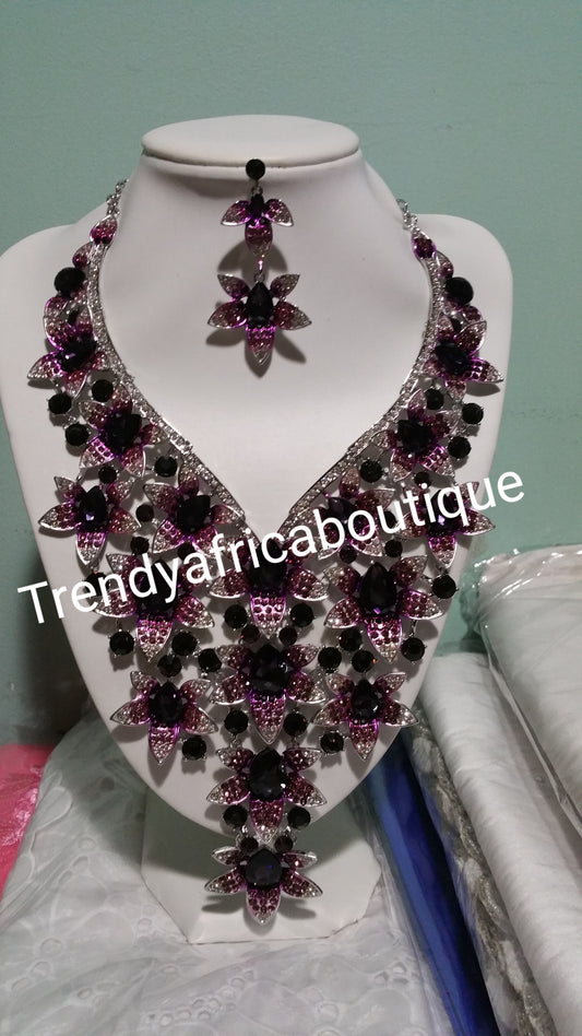 • Latest assorted colors of Crystal necklace set for weddings/big event. Beautiful  necklace and matching earrings. Costume jewelry set in dazzlying crystal in 18k gold plating