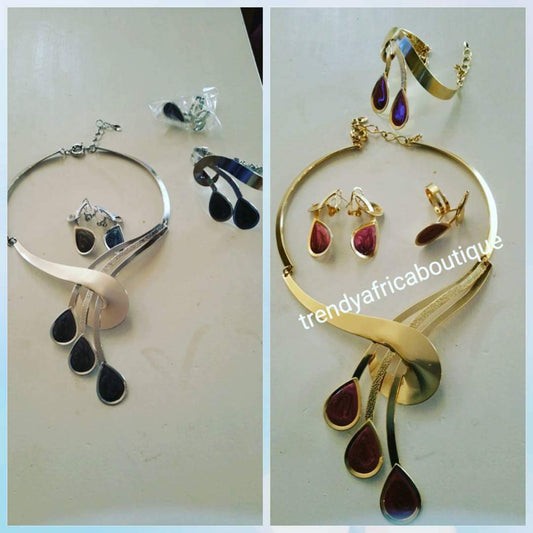4pcs. 18k Gold plated and Silver plated costume-Jewelry set. High quality plating, hypoallergenic. Africa/Nigerian party jewelries set.