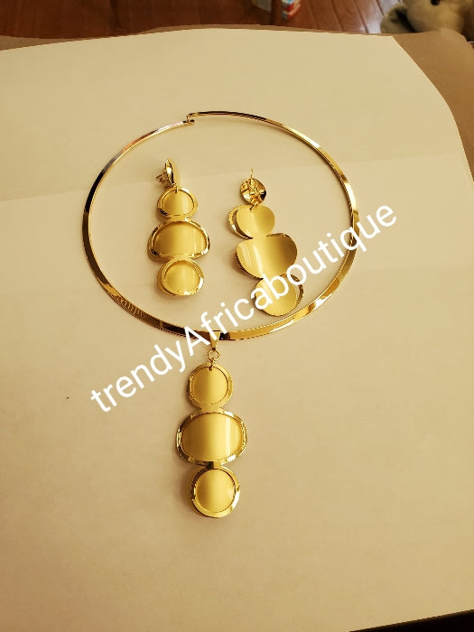 18k Gold + silver, 2 tone electroplated 4pcs necklace set. Top quality African costume choker necklace set. Long lasting plating, hypoallergenic plating