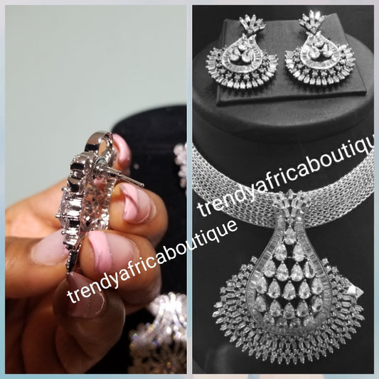 Sale sale: 3pcs set 22k quality silver electroplated choker set. CZ stoned Pendant and earrings matching set with choker chain. Top quality/hypo allergenic plating