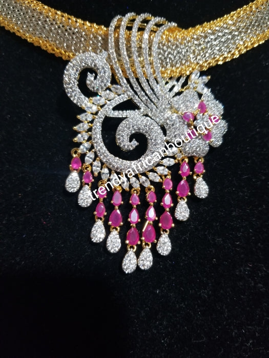 2pcs 22k quality 2 tone Gold electroplating in choker set. Sold as a set. Pendant is mounted with pink and crystal CZ diamond stones. Top quality/hypo allergenic plating